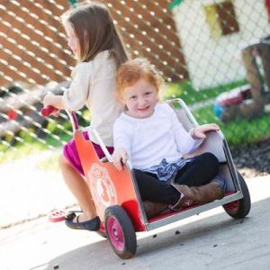 teamwork by two preschoolers playing with each other